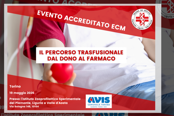 Il corso fornisce una visione globale della legislazione Trasfusionale dalle origini all’attuale Regolamento Europeo 2024 /1938 per Soho e al suo impatto sul Sistema Trasfusionale Italiano, presenta il panorama Nazionale dell’autosufficienza per plasma-derivati con un’analisi della situazione in Piemonte e si propone di far acquisire competenze scientifiche, tecnico-gestionali-manageriali per le attività di Raccolta del sangue e per la Preparazione e Validazione degli Emocomponenti